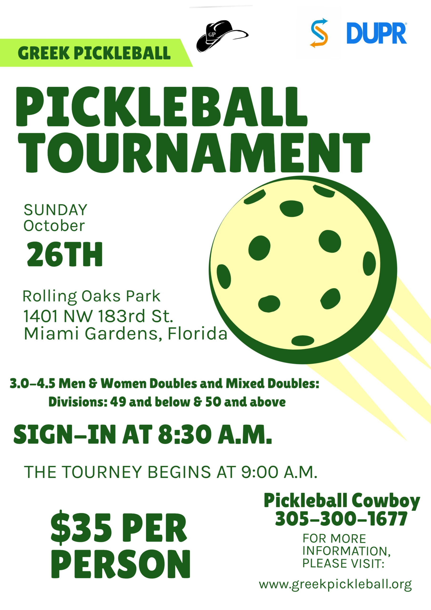 Welcome to the Greek Pickleball Tournament. We're thrilled to have you join us for a fun-filled day of pickleball action. Come ready to compete, connect with fellow players, and win BIG prizes! Let's get this tournament started!" REGISTER NOW